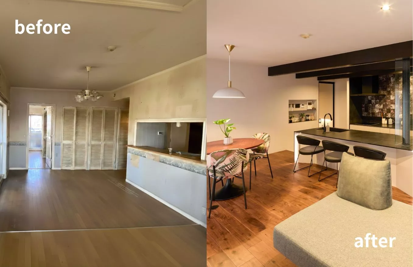 毎日がホテル気分。造作キッチンと家事ラク回遊動線のある住まい|マンションリノベ見学会in岡崎市